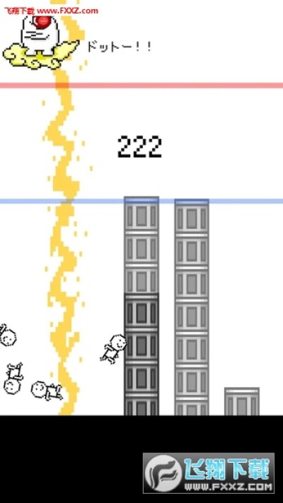 -当塔顶越过红线时则会game over,塔顶没到蓝线时降下天雷塔不会被破坏,这会让神很僧器,并在一段时间内没法使用天雷。