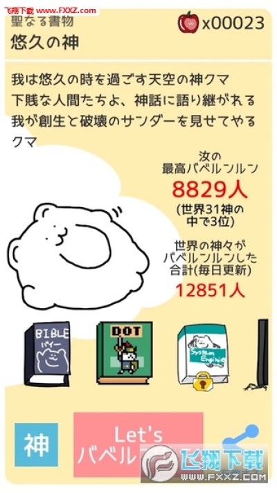 你将成为神之熊熊,在人类即将建造完通天之塔时降下天雷破坏掉塔,享受破坏的快感!