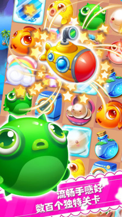 《海底萌萌消》是一款经典的休闲益智类消除游戏,滑动消除,以娃娃鱼、章鱼、贝壳、鲸鱼、海豚、鲨鱼等海洋生物为元素,以海底世界为关卡图,配合微动态场景,无冗杂的养成模块影响,可以尽情体验消除快感。