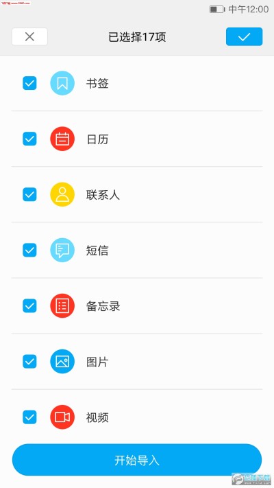 支持数据全面,基本覆盖常见的手机各种数据类型,包括图片、视频、联系人、黑名单、短信、备忘录、日历、闹钟、书签、语音信箱、应用列表、壁纸等。其中备忘录迁移当前支持文本、扫描文稿、图片和视频格式。