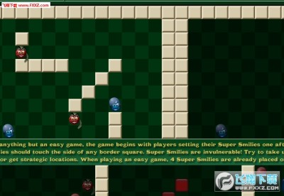 微笑突击队中,玩家将享受到一款充满策略性的游戏竞赛。从你的超级笑脸可延伸出行动的路线,每个回合移动5步,接触后可覆盖对方的颜色。切断对手的路线,使其没有移动和可发展的空间的一方获得游戏胜利。