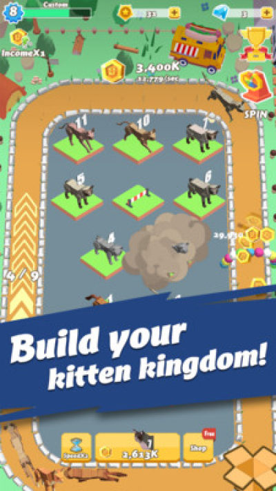 一款非常有趣的休闲小游戏,玩家在游戏里的主要任务就是饲养一只只可爱的小猫,让后通过两两合并的方式,去进化成更高级的品种猫,如此往复。