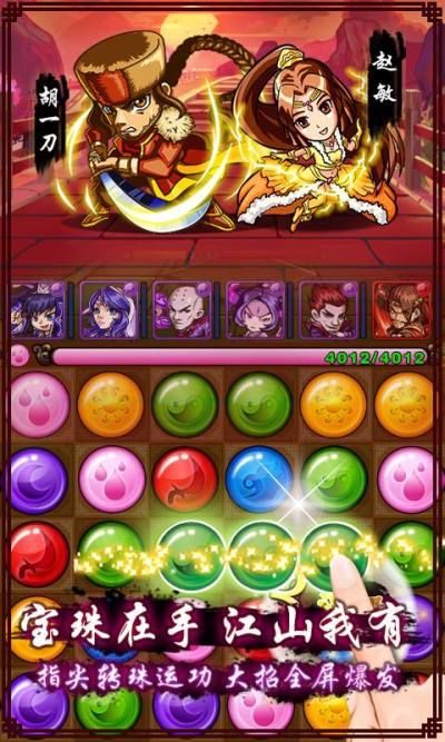 滑动宝珠前,请考虑好你的滑行路线,以便制造出最多的“三色相连”,从而消除更多的宝珠,来施展出最华丽、最暴力的武功招式;