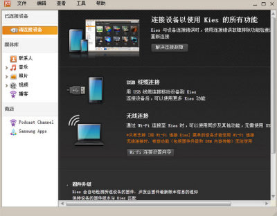 通过Wi-Fi连接Kies,带给您非凡便捷的Kies体验。