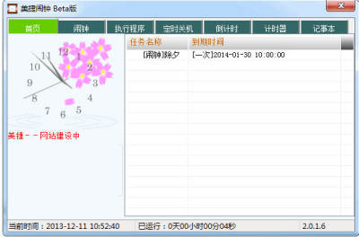 定时闹钟、日程安排、定时执行指定程序、定时关机、定时器、倒计时、计时器、记事本,电脑校时,万年历等功能。