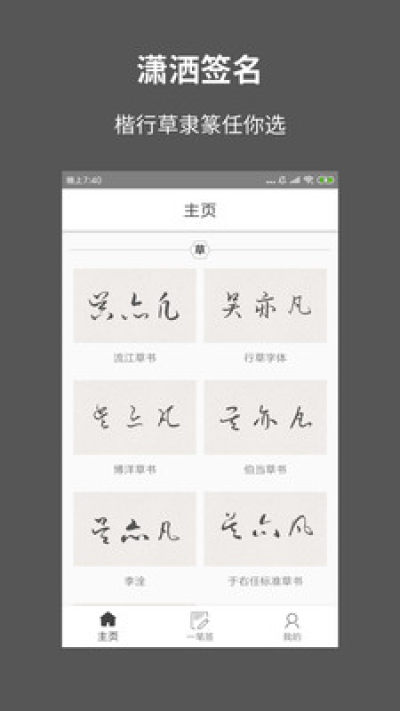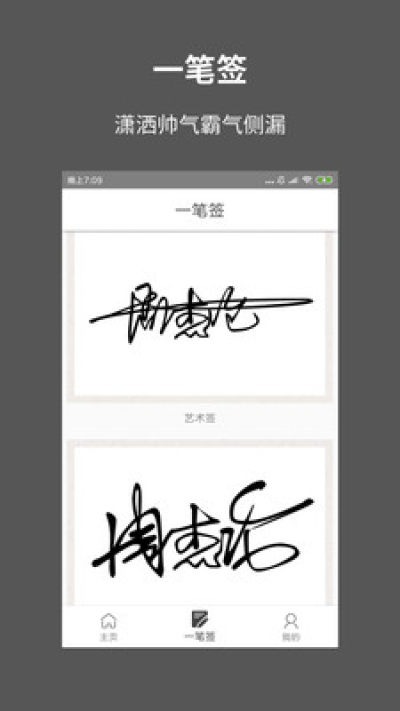 基于多种签名字体的艺术书写形式,提供丰富的签名设计,让你轻松拥有自己的艺术签名。一笔签名、卡通签名、潇洒签名、自豪签名、公文签名、书法签名···无个性,不签名!