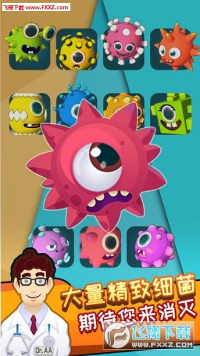 欢迎来到Dr.AA研究院,让我们一起学习水果细菌治疗知识,在Dr.AA带领大家用各种各样的针筒消灭这些奇形怪状的水果萌细菌。