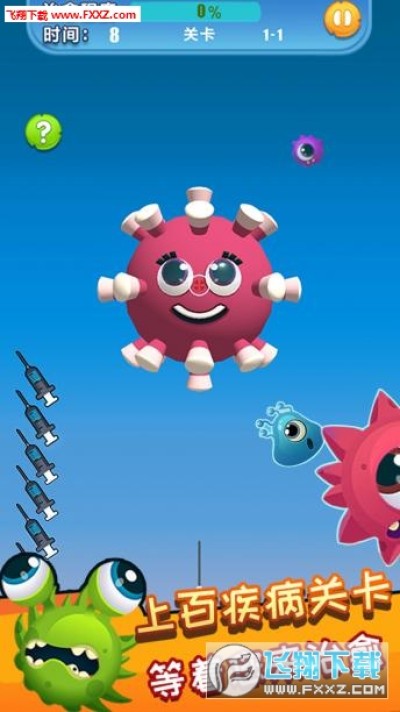 病毒求生大作战安卓版是一款很治愈系的游戏,这款游戏中有很多奇怪的水果的形状,并且游戏中有大量的萌细菌,玩家在这里需要将细菌消灭,你需要一定数量的药剂才能够彻底将细菌消灭,还不能碰到细菌的防御区,喜欢的朋友来试试吧。