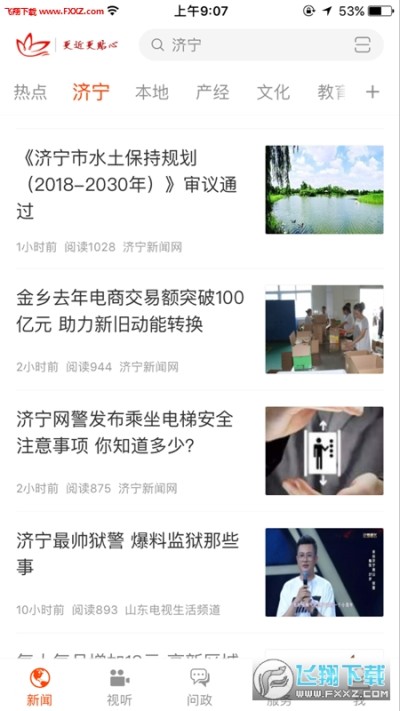 “济宁新闻”客户端主要包括资讯(新闻+政务)、视听(直播+点播)、问政(网络问政)、服务(民生服务+政务服务)四大功能模块。