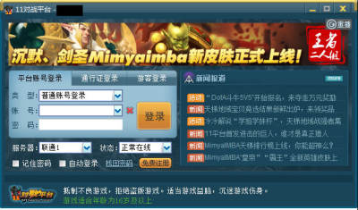 11对战平台是国内的一款电子竞技平台工具,囊括各大竞技类游戏,利用最先进技术吸引最新潮的玩家,无论是DOTA大神还是DOTA新手都能在11对战平台找到自己的乐园。11对战平台运营游戏:DotA ,Imba ,OMG ,Dota6V6 ,真三,澄海, 信长野望,忍者村大战,魔兽RPG, EF, Imca,以及自主开发的金戈铁马。