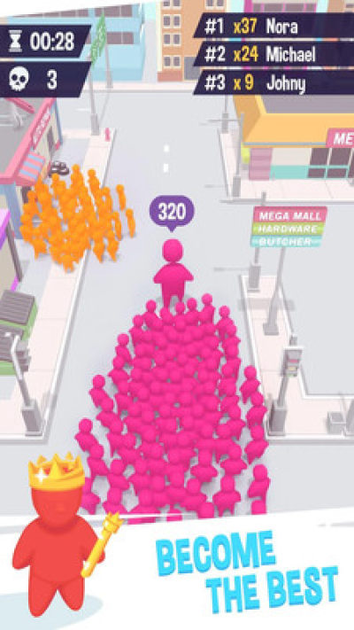 成为最后的幸存者和生存在无尽的人群战争!聚集无数忠诚的追随者,拥有这座城市!毕竟,这是一场领土之战。你可以通过出色的表现与其他玩家交流!这可能是你玩过的最让人上瘾、最有趣的休闲游戏。所以,成为一个跑步者,奔向无尽的城市冒险吧!