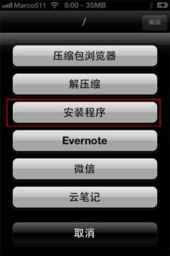 3、使用iFile打开手机根目录,点击安装包,在弹出面板上选择“安装程序”: