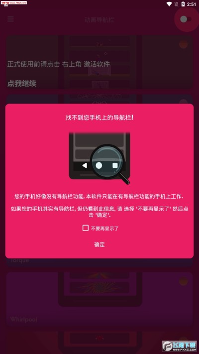 手机动画导航栏软件,可以让你的虚拟按键与众不同,不吹嘘,不高傲,低调使用,给软件全部权限,加入电池白名单,重新启动软件也不会被杀掉,最好有root权限的手机,装到系统应用,软件不费电,转为美化而生,几百种超级漂亮的特效,破解专业版【汉化版】,全部免费使用。