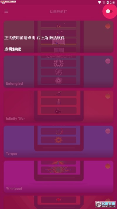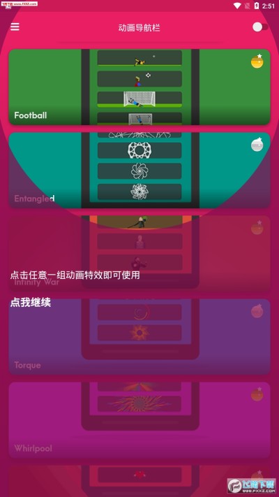动画导航栏app是一款相当不错的手机界面美化工具,下载使用后我们就能进行各种手机趣味动画的设置,软件功能强大使用方便很适合用户们放松娱乐喜欢的话那就速速来飞翔下载体验吧。