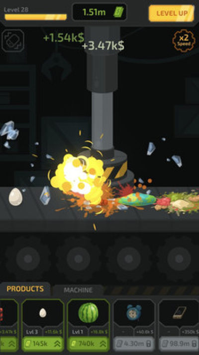 玩家需要操控机器碾压各种水果,手机,炸弹等等,不喜欢的东西统统可以压碎,创意十足的玩法和搞笑的音乐结合在一起,精细的游戏画面,在这个独特的世界之中将会让你感受一个极致精彩趣味的解压冒险的挑战,让你去不断的在这个传送带之上进行放置各种道具和障碍物。