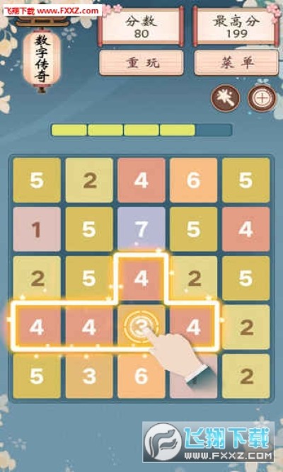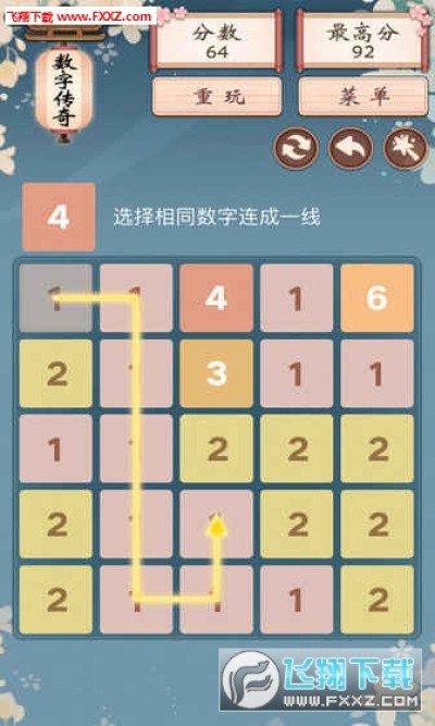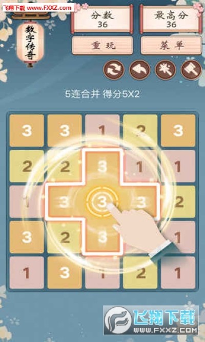 数字合合:选择连接在一起的相同数字,选中的数字+1,其他的相同数字会被消除。