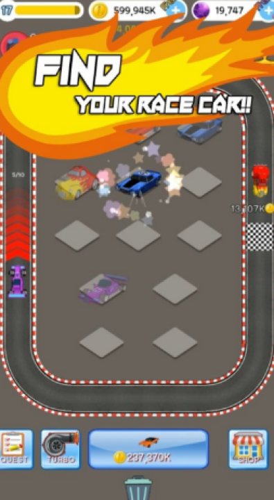 购买,合并和管理您的赛车,这样您就可以让它们飞来赚钱!
