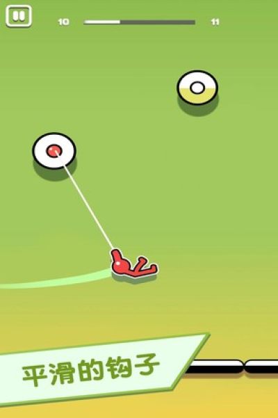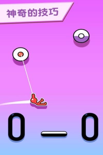 玩家在游戏中通过点击屏幕来释放绳索让火柴人进行悬挂荡悠,选择合适的时机松开火柴人就会旋转跳跃。