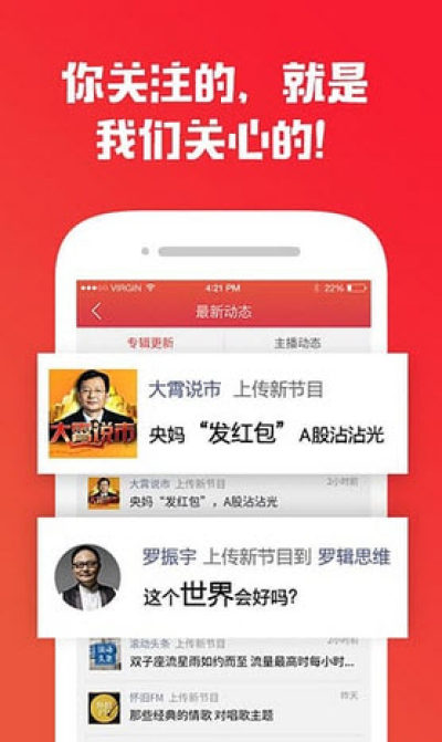 2.跨地域收听:无论你身在何处,足不出户,就可以听遍天下广播;你也可以让你喜欢的电台跟随着您走遍天下。