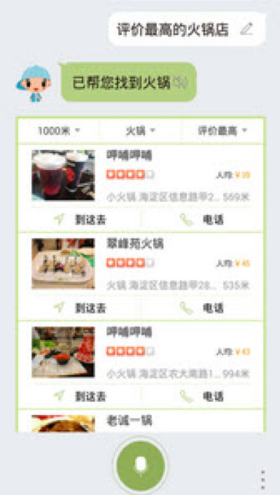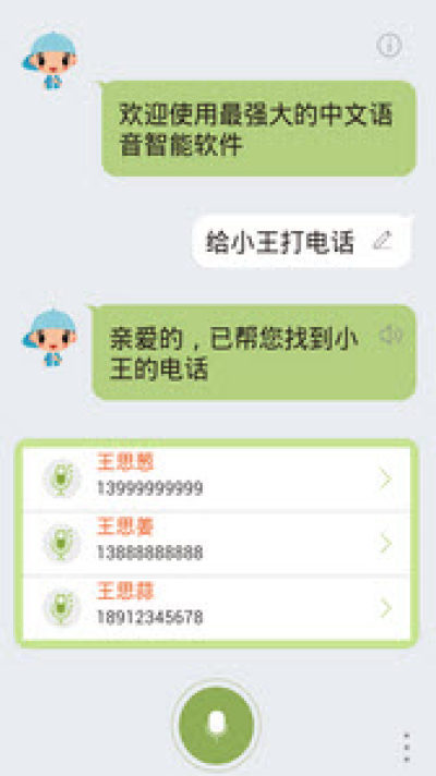 3、首个支持用户用语音呼叫公众号码的智能语音助手,支持10万个商家号码;