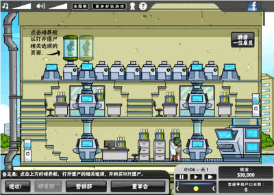 游戏只需要简单的鼠标操作,一开始会有三种难度选择,分别为简单级给予40000美金,普通级为30000美金,困难级为20000美金。游戏开始后玩家可以先进入研发部,该部门用于购买或升级你的僵尸大军。当购买了一定的僵尸后,你可以点击左下角的“进攻”按钮,进入僵尸公司的司令部。先为司令部雇佣员工,司令部的员工能够增加你的军队的僵尸数目,之后在地图上选择你要攻击的区域,开始进攻吧。进攻时你可以自由设定进攻的兵力多少,当成功拿下地方目标之后,你会或得金钱奖励。