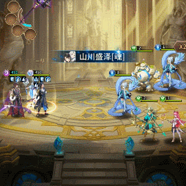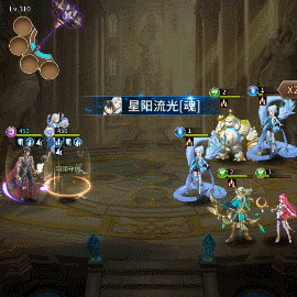 麒麟站在后排时释放【山】,提升己方全体指定属性,随后对敌方前中排全体造成伤害。
