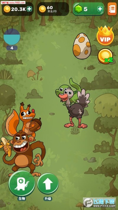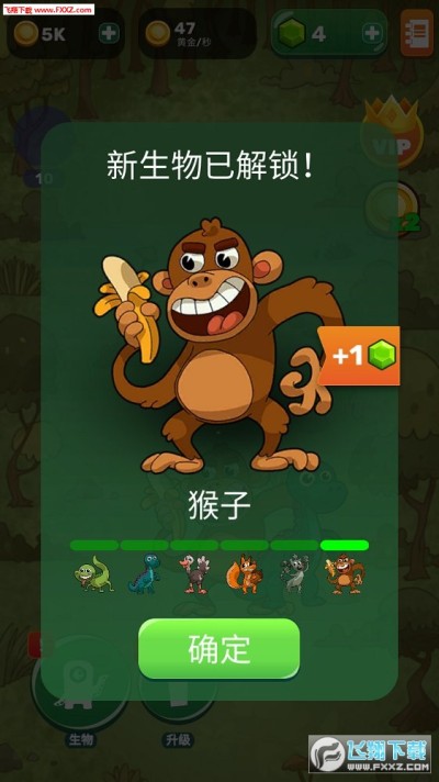 4、很良心的设计,金币的获取除了合成本身之外,还可以通过点击生物,满屏的生物可以同时点击哟,可以说金币的获取不困难,新角色的诞生真的不难。