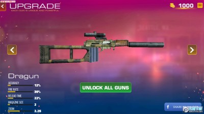 3、游戏中没有其他的枪支,只有各种炫酷造型的狙击枪,完成任务获得金币后可以购买;