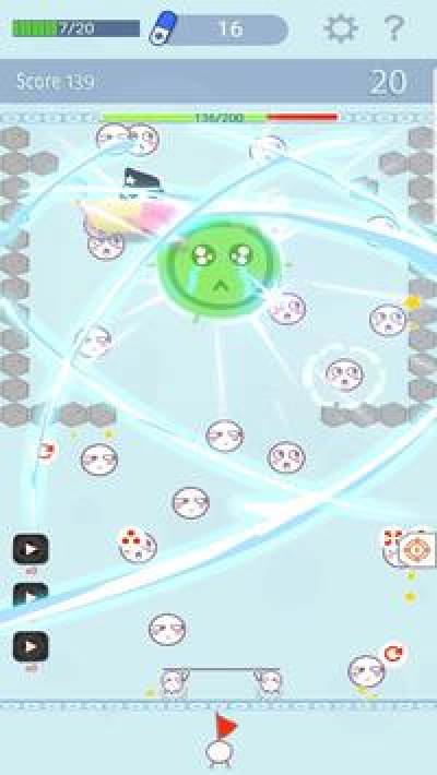 2.这款游戏的通关需要技巧,尽量把握白细胞的反弹方向,驱使它一次击中更多的细胞;