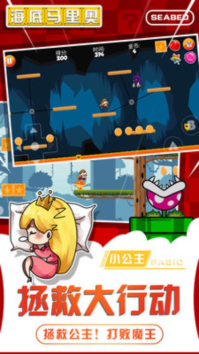 80后或90后百分百玩过的超级马里奥! 吃蘑菇、踩乌龟,更多玩法等您解锁!全新道具助您闯关!让你在丛林,沙漠,天空,和马里奥大叔一起救出公主!