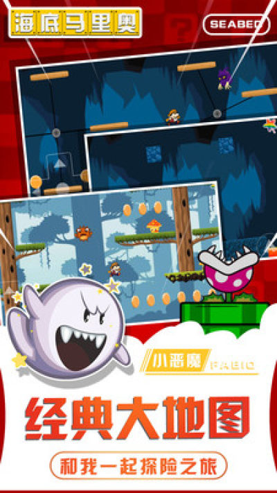 《海底马里奥》是一款画面精美的经典马里奥系列游戏,同样的场景、同样的任务和同样的操作,让你在安卓手机上体验童年的乐趣。