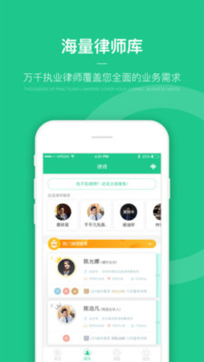 《绿豆圈》app是一款服务人民的手机应用,解决用户在法律上遇到的难题,可以在线咨询专业的律师,同时给用户智能匹配合适的律师,轻松搞定用户问题;需要的话就赶紧下载体验吧!
