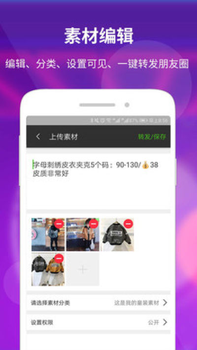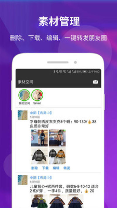 可保存好友发布的素材到自己的素材空间,可保存自己的素材到自己的素材空间,非常方便实用。