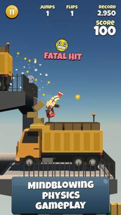 空中的挑战你可以来尽情的发挥才能够让你来保持足够的专注力;当然不要出现任何的意外情况,随时都能够让你的指尖享受更多的激情;发挥出最好的跳跃,能够在空中的姿势尽量的完美,获得更多的分数。借助自定义物理引擎和动画布娃娃物理,每一次的跳跃更加的真实;现在第一次使用具有前卫图形风格的小型便携式大小的手机游戏;Backflipper是有史以来最具活力和娱乐性的倒转体验,这种感觉非常的酷。各种凉爽的地方,你都可以通过你的跳跃方式来征服;选择你的位置! 摩天大楼屋顶,超速驾驶汽车,电梯,树木和公园,卡车甚至飞机。