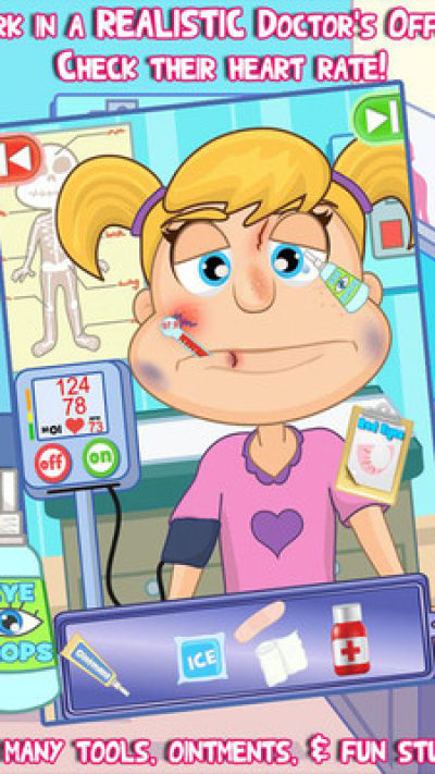 从做初步评估开始!用你漂亮的听诊器检查病人的心跳!使用压舌板,病人会说“啊哈”,同时检查耳镜检查他们的耳朵,检眼镜检查他们的眼睛,就像你当地的医生一样!!也要成为一名护士,在医院的分诊室治疗病人!!