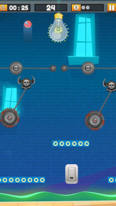 在5次机会中关灯,否则你会失败。你必须在这个益智游戏中使用你的大脑。通过在屏幕上拖动手指来准确设置位置。抬起手指使球落下。