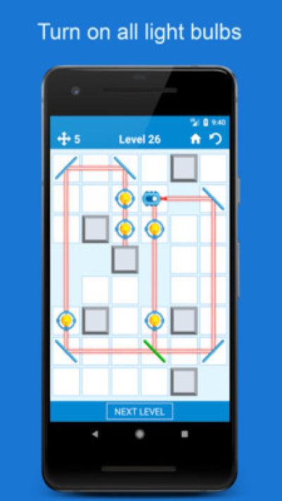 这个益智游戏的目标是建立镜像,这样所有的灯灯泡成为开启。你有这个不同类型的镜面上的反映方式不同的激光束。
