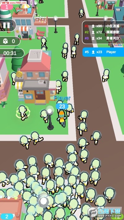 决战小镇是一款很有趣的一款IO游戏,在火爆游戏拥挤城市的基础上加入了很新颖的交互玩法哟,可以说是一款很有创意的休闲游戏了,玩家要做的就是感化小镇上所有的人,让他们支持你并加入你,成为你的人,组成小镇上最厉害的团队,打败其他战队,你就是小镇上最有人气的人,小镇上所有人都听你的,你就是绝对的权威。