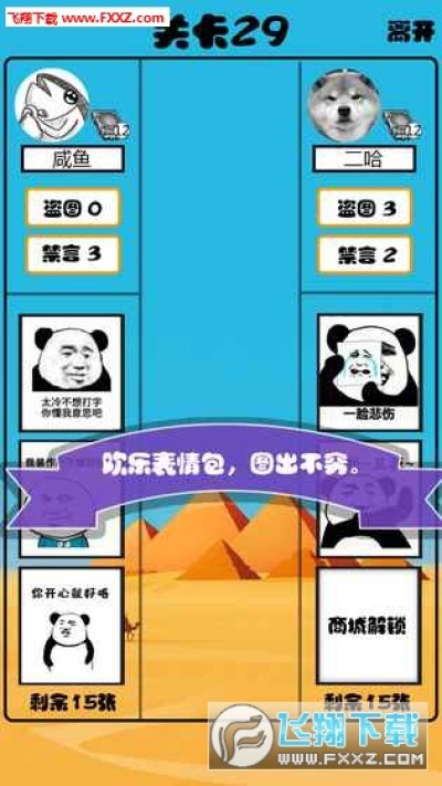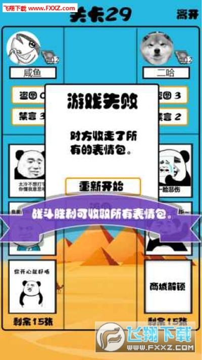 游戏采用了经典的表情包元素,选择不同的表情包卡牌进行游戏,谁最后的卡牌多谁赢。