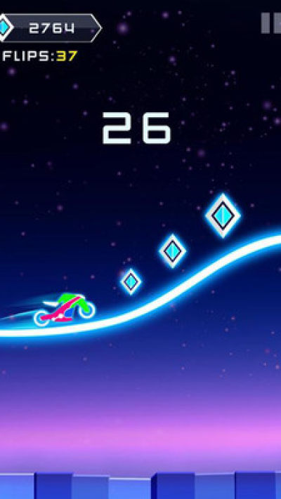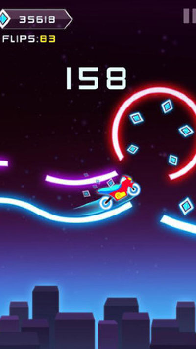 《霓虹摩托车安卓版》是一款霓虹风格的休闲跑酷类有,游戏里玩家需要驾驶摩托在横版场景里跑酷,收集菱形并跟随跑酷做出各种炫酷的动作,跳跃躲避机关陷阱完成关卡挑战,独特的视角效果风格快来下载试试吧!