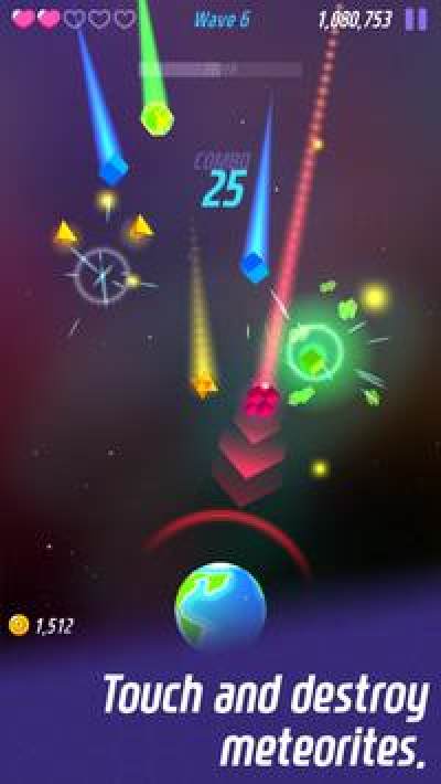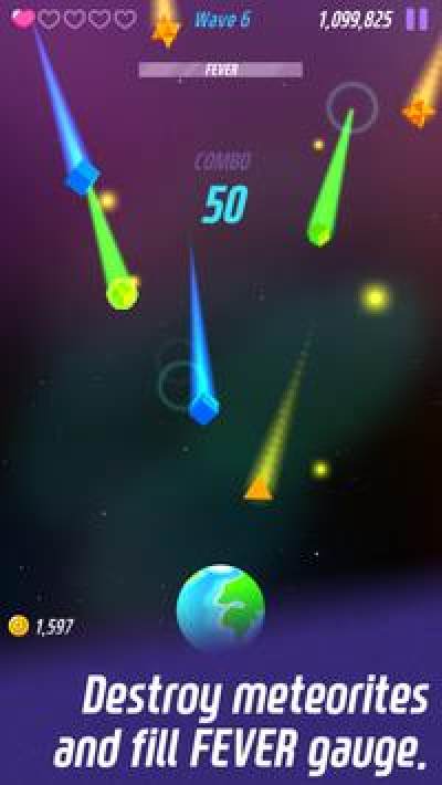 3、游戏的风格轻松简单,操控上也非常容易上手,快速的点击屏幕来消除陨石吧。