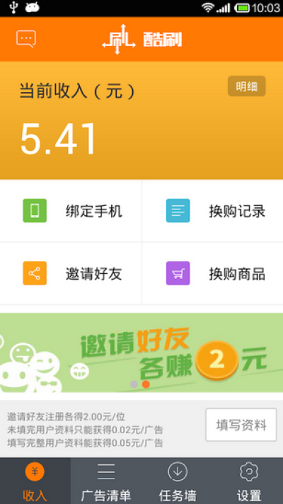 3、邀请好友使用酷划再赚2元,好友也有两元入账;注册时填写8279252邀请码,2元现金立马到手!