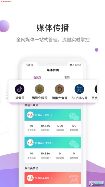 乐偶云app是一款自媒体运营平台,为用户提供了24小时的运营服务,这里有平台数据共享,还能够获取渠道信息,为用户带来了丰富的线索等内容,你可以全面的掌握运营情况,让你的自媒体运营更好,需要的朋友赶紧下载吧。