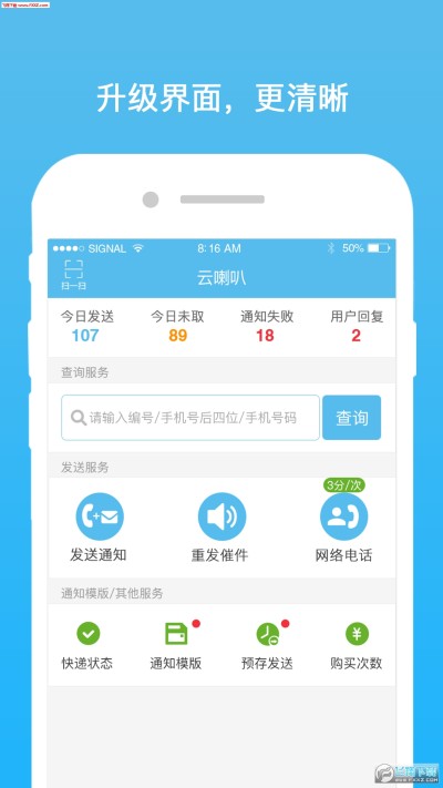 云喇叭APP是一款快递通知神器,帮助快递员自动打电话和发短信通知用户取快件。
