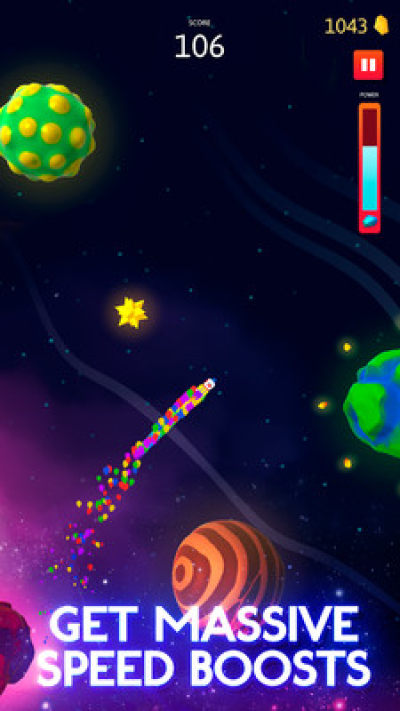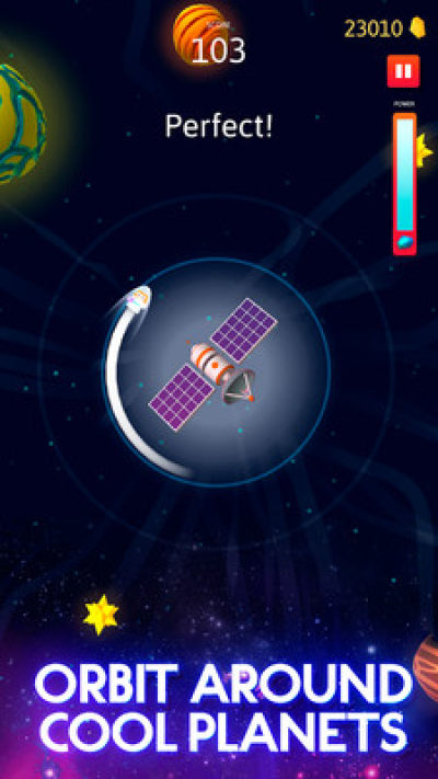 外太空中航行游戏是一款很有趣的游戏,玩家在这款游戏中要尽可能的围绕行星转动,并且你要在黑洞来临的时候远离他们,游戏中有60多种的角色皮肤,还能够看景太空,玩起来非常的有趣,喜欢的朋友来试试吧。