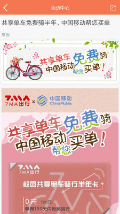 《MAMA出行》app是一款校园共享单车品牌手机端,用户现在注册即可免费骑行半年,一键即可扫码开锁,使用起来非常方便快捷,而且骑行价格非常优惠;需要的话就下载试试吧!