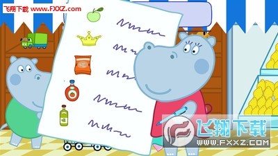 之后,河马与她的爸爸和小弟弟到达收银台并支付货款 - 您将与妈妈河马会面,这将检查购物清单和所有你已经买了。不要再买些东西了收集所有5星,妈妈会很高兴!