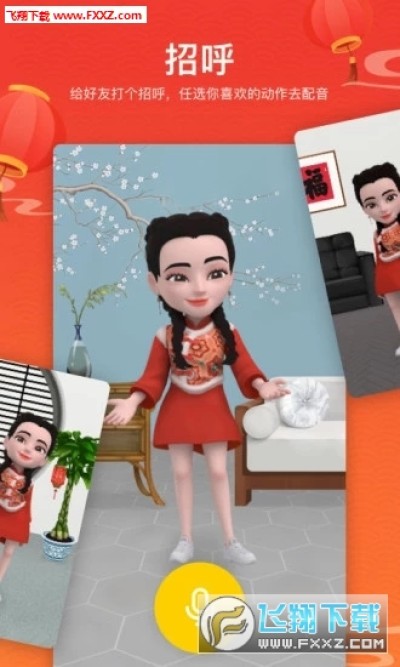【招呼】超多打招呼动作,不仅可以配音发送好友,阅后即焚;还能在“家”和好友互动;录制成精彩短视频发送qq或微信好友。