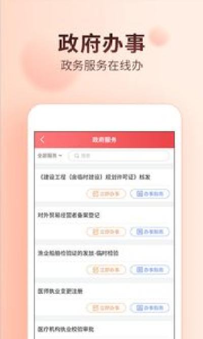 (一)政府办事:提供跨部门政务服务的在线办事及政务办事指南等惠民服务。