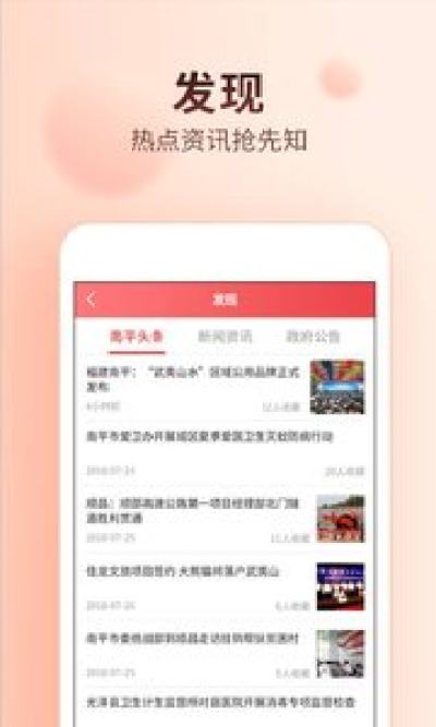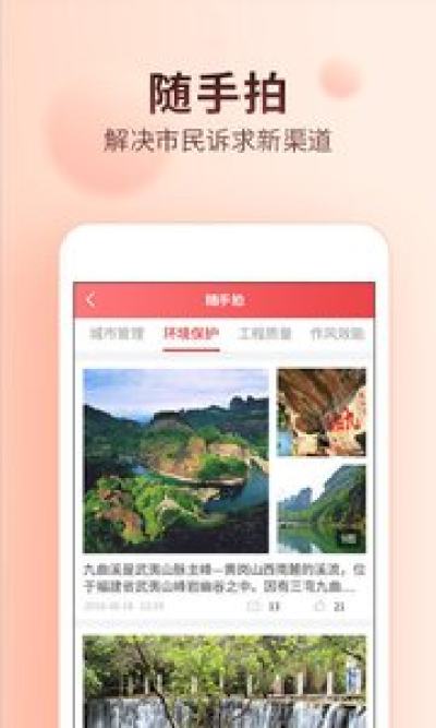 掌上南平APP是一个为南平人民提供多种生活服务的综合性服务平台,包含了资讯、政务服务、交通等诸多方面,为人们的生活带去更多的便利,更有热门活动“随手拍”,随时反应问题,快下载掌上南平APP体验吧。